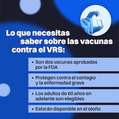 Cada año, millones de personas contraen VRS, lo que conlleva a alrededor de 180,000 hospitalizaciones y 14,000 muertes. Los bebés, los niños pequeños y los adultos mayores sufren el mayor riesgo. Recientemente, la FDA aprobó tres opciones altamente eficaces contra el VRS que estarán disponibles en otoño: dos vacunas para adultos mayores de 60 y un tratamiento de anticuerpos para niños pequeños. Otra vacuna, que se aplicaría durante el embarazo para proteger a los bebés, también está en proceso.