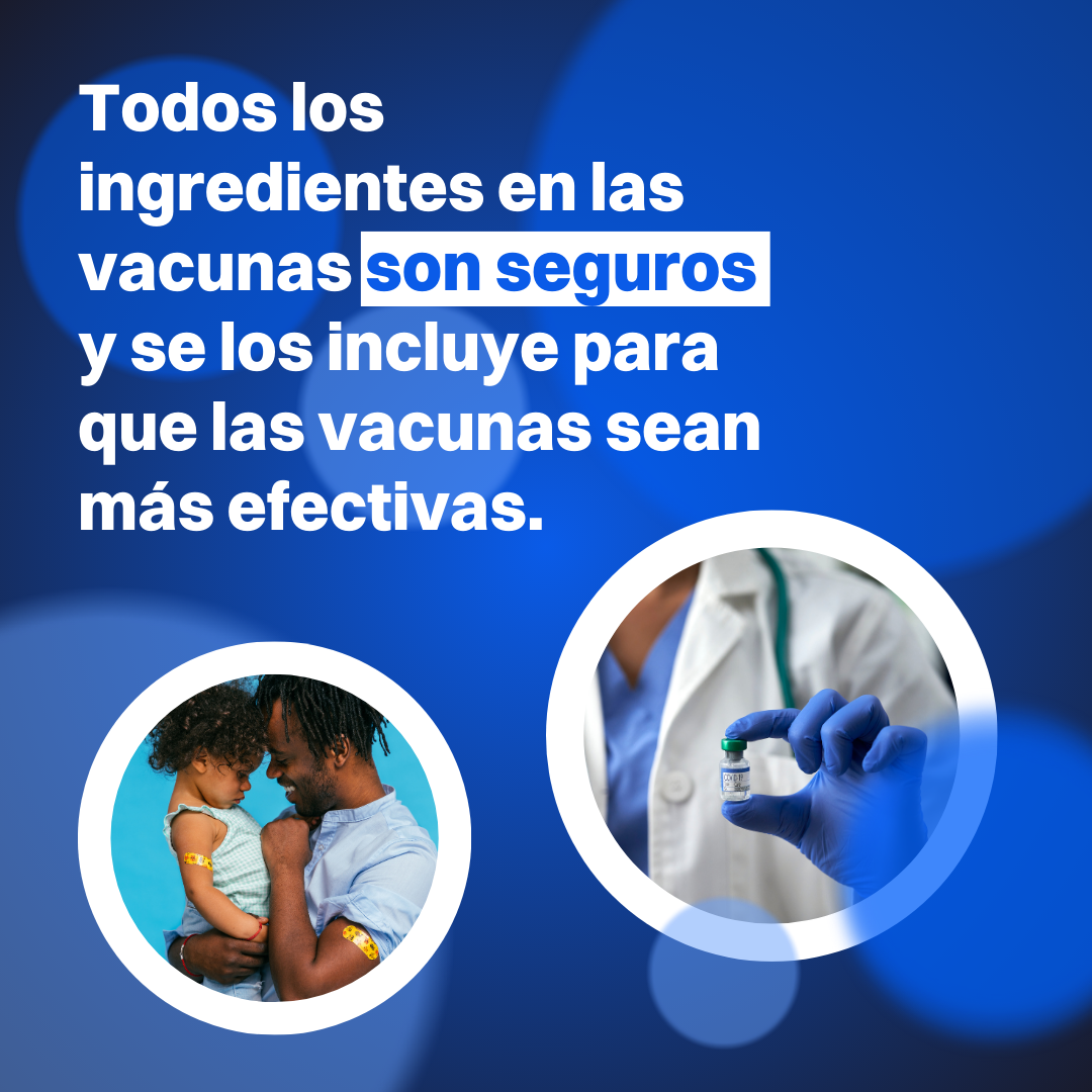 Los opositores a las vacunas a menudo mencionan algunos ingredientes en las vacunas que suenan aterradores para engañar a las personas y desalentar la vacunación. En realidad, no hay “toxinas” en las vacunas porque todos los ingredientes incluidos en ellas pasan por pruebas rigurosas de seguridad. Cada ingrediente que se usa en una vacuna la hace más segura y efectiva.