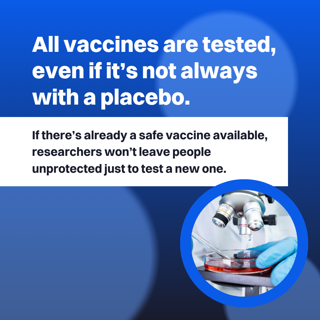 The U.S. has many systems in place to ensure vaccine safety. All vaccines undergo rigorous, lengthy safety trials, but not all are tested against a placebo—for good reason. Using a placebo to test a new vaccine when an effective vaccine already exists puts people at unnecessary risk.